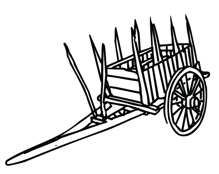 Carruaje de dos ruedas, con lanza, para enganchar al tiro a dos animales, cuyo armazon se compone de un bastidor con listones para sostener la carga, con la ayuda de varales en los costados y a veces en el frente y fondo.