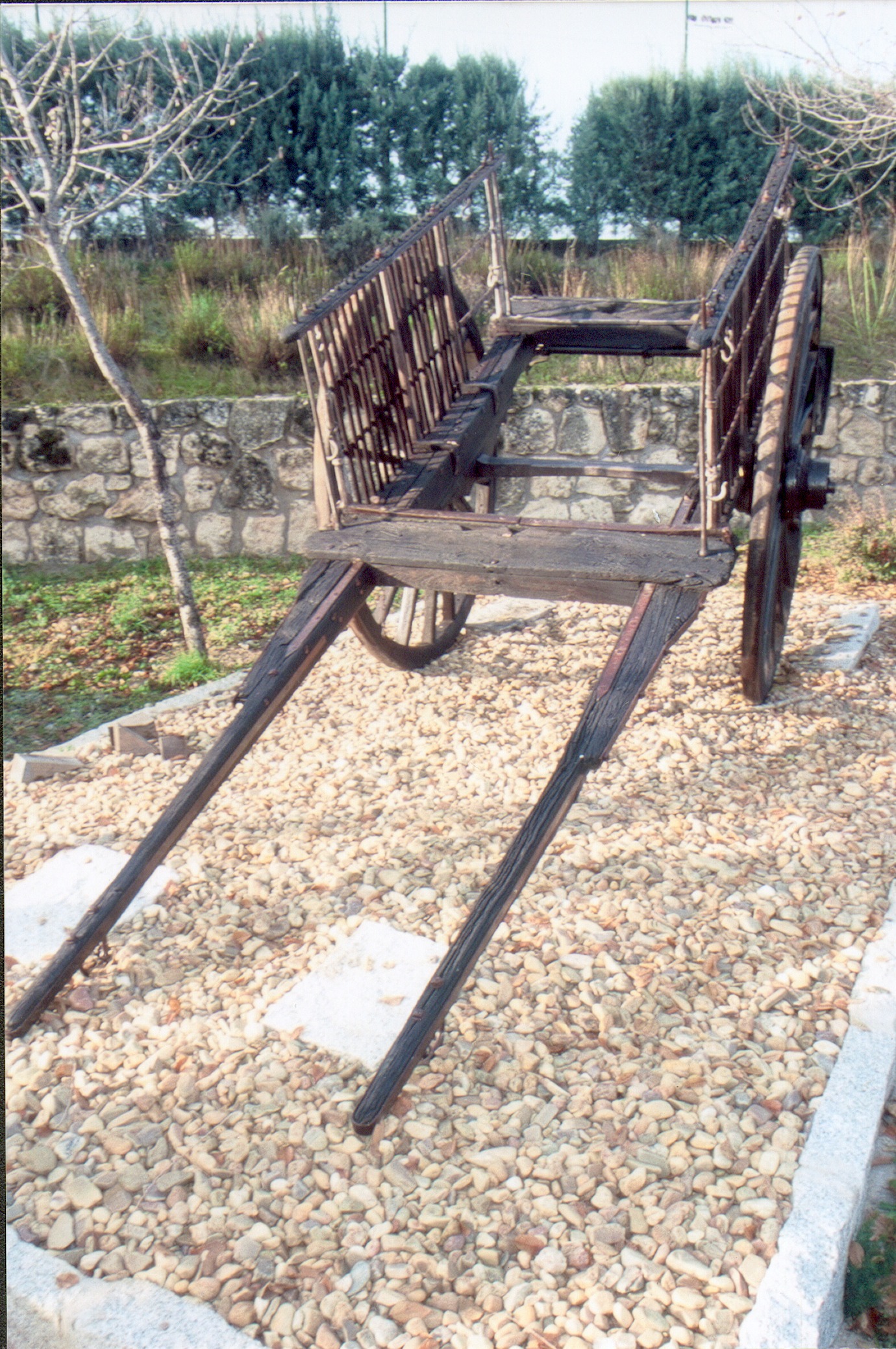 Carruaje de dos ruedas, con dos varas, para enganchar el tiro de un solo animal, y cuyo armazón consiste en un bastidor con listones, para sostener la carga y tablas o varales en los costados y a veces también en el frente y fondo, para sujetarla.