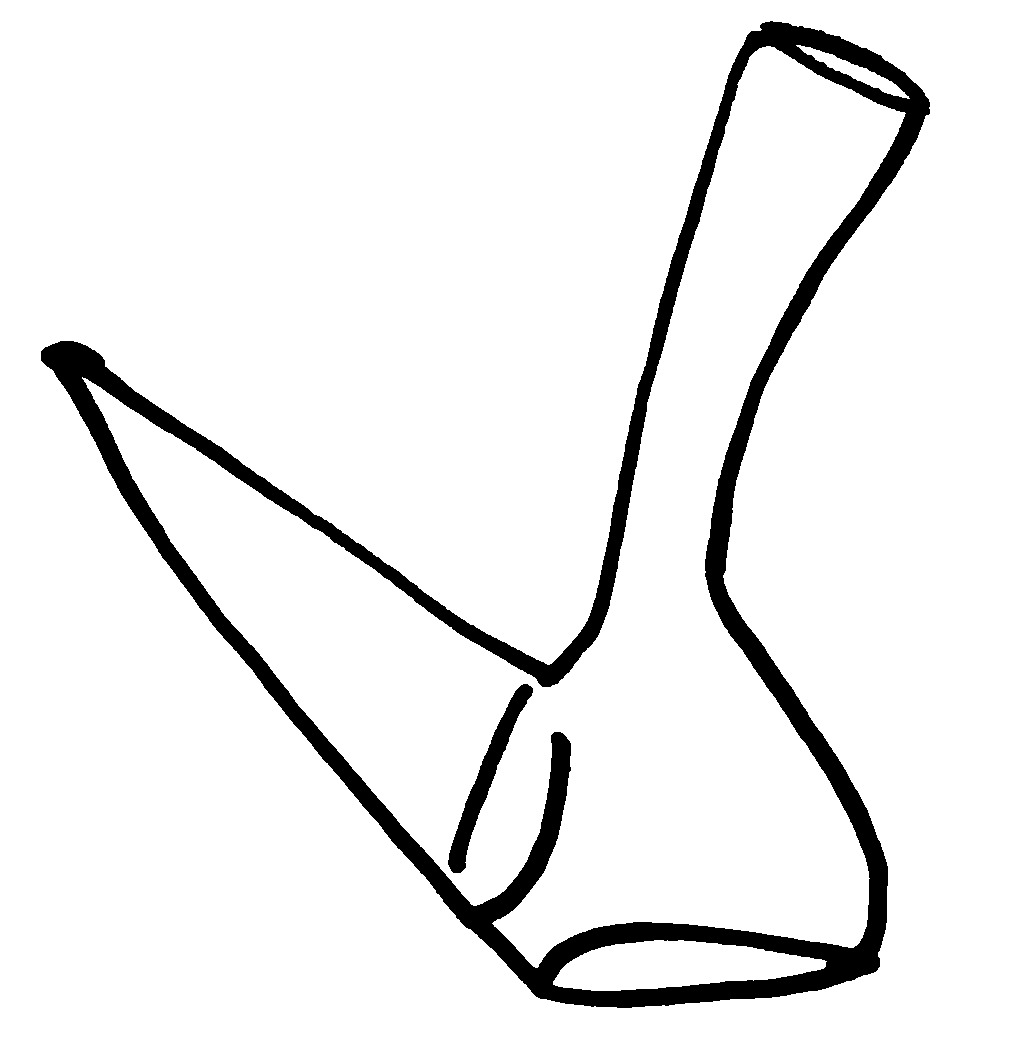 Vasija de vidrio, de forma tendente a cónica, con dos largos cuellos cónicos, uno de boca ancha para recargar el recipiente y otro de boca estrecha para salida de líquido.