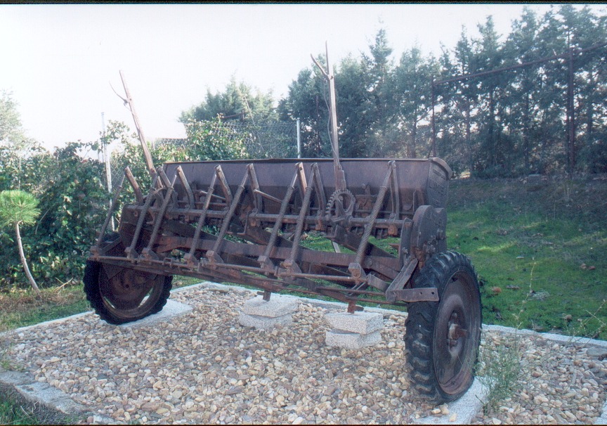 Máquina, montada sobre un eje con ruedas, compuesta de un depósito donde se encuentra la simiente que va saliendo por unas tolvas, regulables, para depositarla en tierra adecuadamente mendiente una especie de palas en forma de rastrillo amplio.